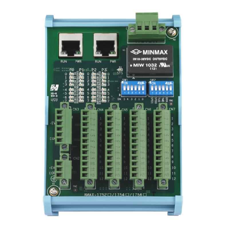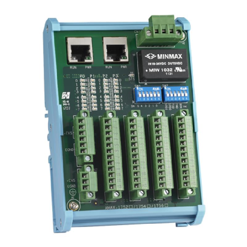 - AMAX-1000系列數(shù)字量I/O從站模塊為緊湊基板式設(shè)計(jì),可以水平安裝。板載接線端子方便直接連線,具備LED指示燈方便調(diào)試診斷。所有數(shù)字量I/O從站模塊均可以標(biāo)準(zhǔn)以太網(wǎng)線纜進(jìn)行分散式分布和連接,節(jié)省布線時(shí)間和維護(hù)成本。目前該系列共有三個(gè)型號(hào):32路數(shù)字量輸入模塊(AMAX-1752),32路數(shù)字量輸出模塊(AMAX-1754),以及16路數(shù)字量輸入/輸出模塊(AMAX-1756)。使用最大通訊速率時(shí),2048個(gè)數(shù)字量I/O點(diǎn)可以在短至1.04毫秒內(nèi)掃描和刷新。