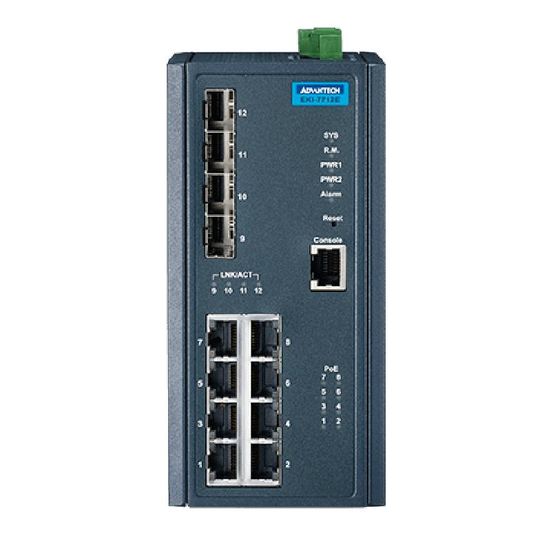 研華EKI-7712E-4FPI 8FE+4SFP百兆PoE網(wǎng)管型工業(yè)以太網(wǎng)交換機, IEEE802.3af/at, 46~57VDC, -40~75℃